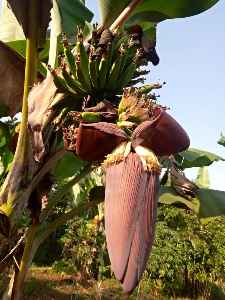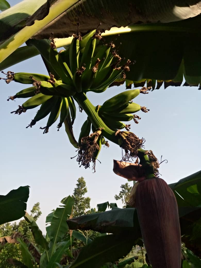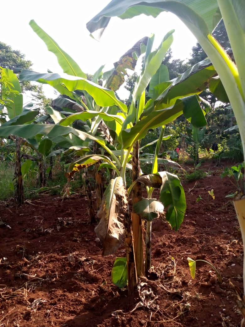 Het was hard nodig om onkruid te verwijderen tussen de bananenbomen en erg mooi om te zien dat er al 3 bomen zijn die vrucht dragen. Ook zijn er bomen die zich verstekt hebben. Deze stekken kunnen weer worden uitgeplant zodat het aantal bomen zich vermeerdert.