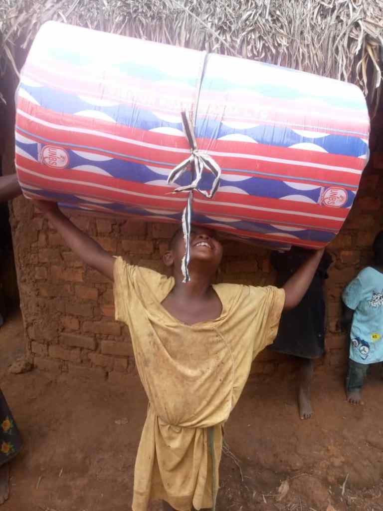 Oma slaapt met een tweeling in haar hut. Omdat er een lek in het dak zat moest oma steeds het matje verleggen om niet in de drup te liggen. Het dak van oma is nu gemaakt en tevens is ze verrast met een matras, deken en lakens. De tweeling is ook superblij. Samen kunnen ze nu droog en zacht slapen.