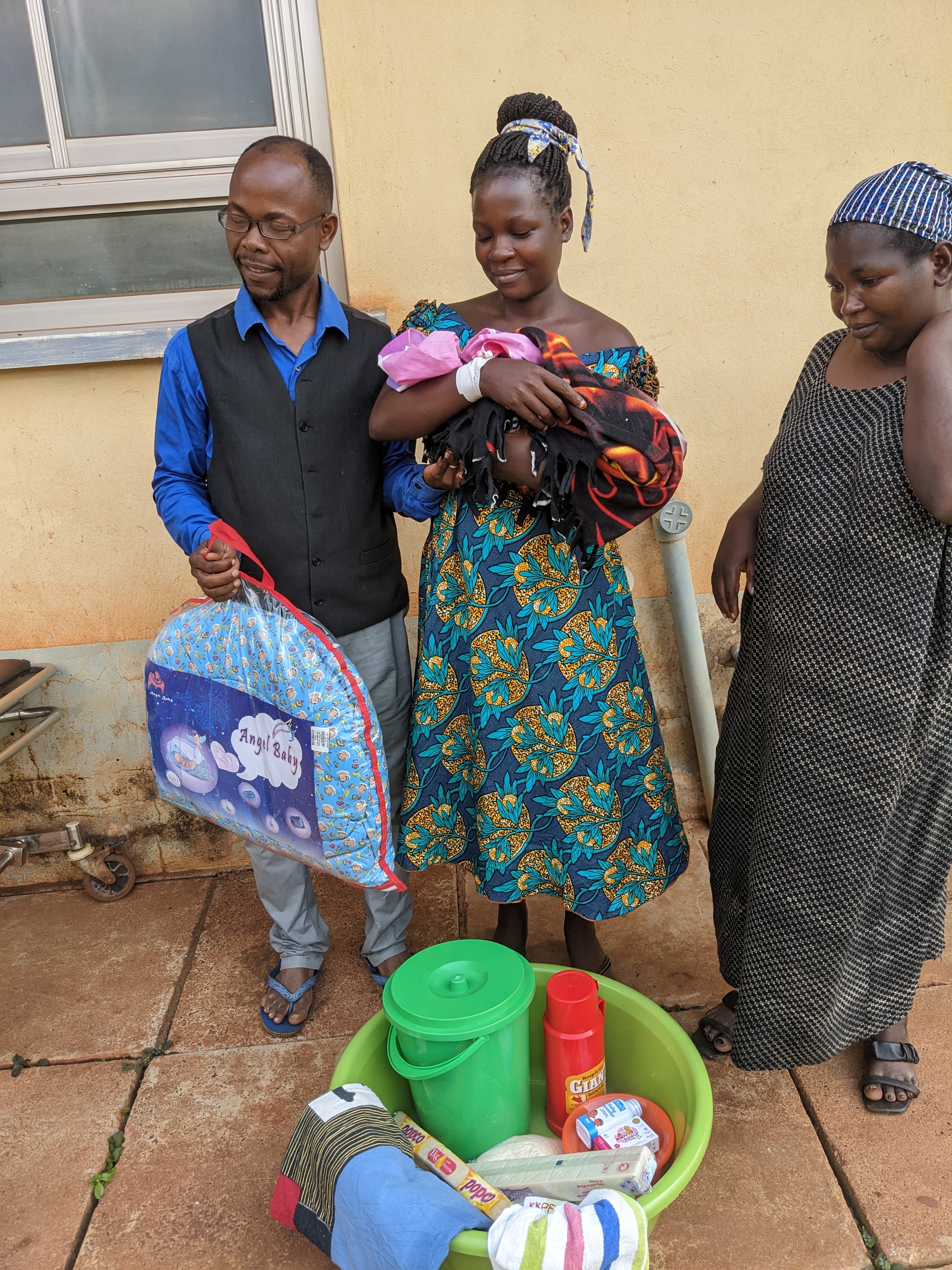Creation Africa heeft hen een mooi Momma Luv pakket overhandigd, ter bemoediging, waar zij ontzettend blij mee waren. Vooral vader is erg trots en zorgzaam ten aanzien van zijn zoon en zijn vrouw.