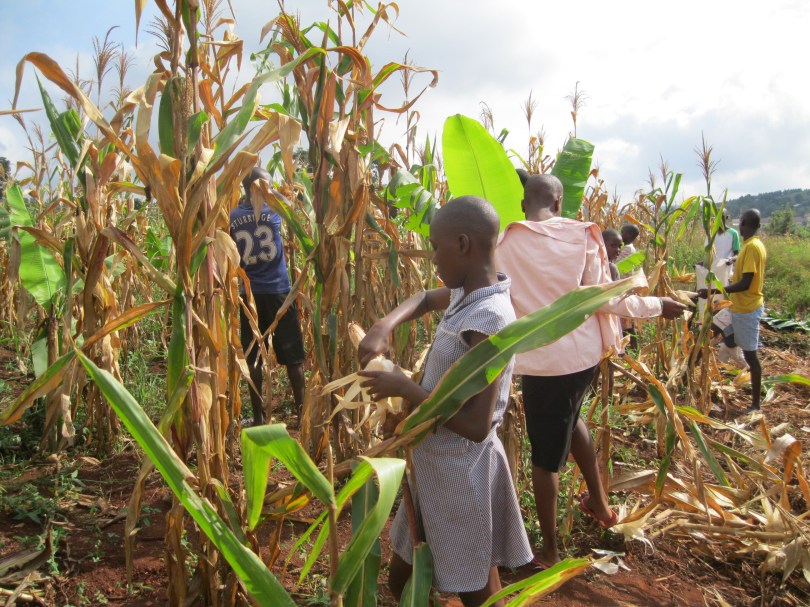 Kinderen oogsten mais